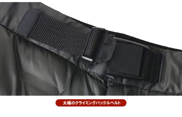 前半分に太幅のクライミングバックルベルトが内蔵されたフリーサイズのウエスト。