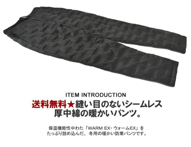 ●保温機能性中わた「WARM EX・ウォームEX」をたっぷり詰め込んだ、冬用の暖かい防寒パンツです。