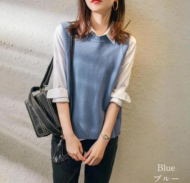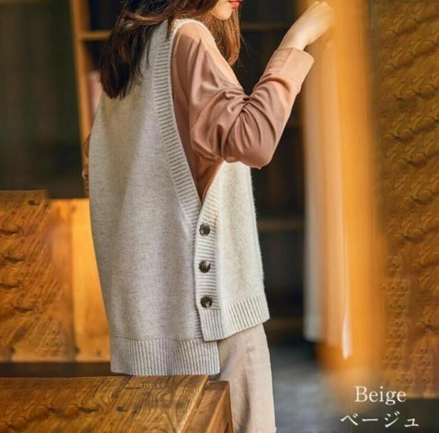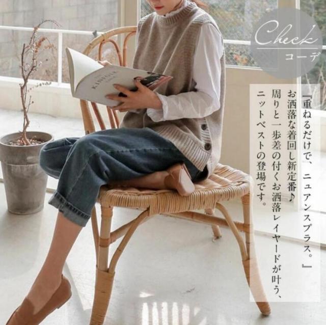周りと一歩差の付くお洒落レイヤードが叶う、ニットベストの登場です。