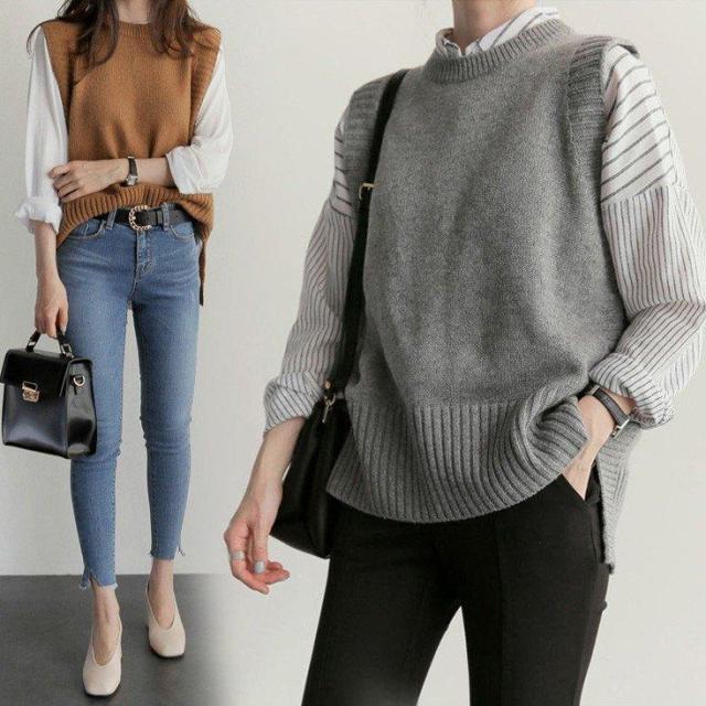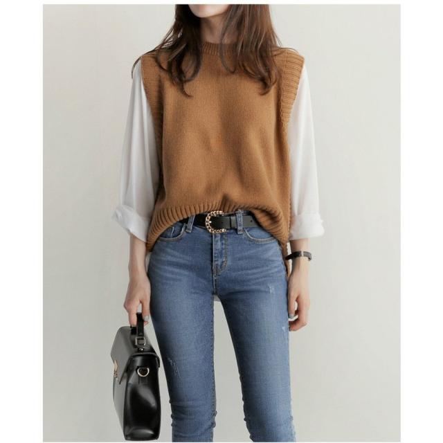 連携キーワード:ニットベスト レディース 40代 秋服 ベストセーター 無地 ショット丈 上品 ノースリープニットベスト セーター韓国風 体型カバー 通勤 着痩せ 2色