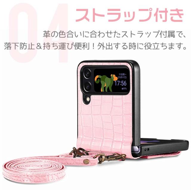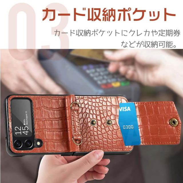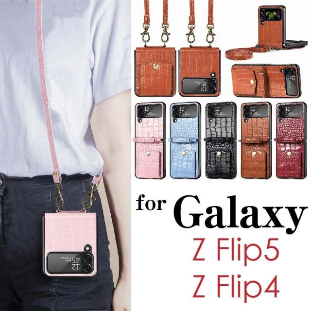 Galaxy Z Flip5 Z Flip4 5G ケース ギャラクシー Z Flip5 Z Flip4 カバー 財布 一体型 ショルダー スマホショルダー ワニ柄 折りたたみ 携帯ケース 携帯カバー 背面型 耐衝撃 スキミング防止 ストラップホール スマホケース シンプル レディース