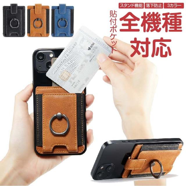 スマホカードケース貼り付け リング付き カードケース スマホ 貼り付け スマホポケット カード スマホカードケース カード収納 背面ポケット カードポケット 貼る アクセサリー スマホアクセ icカード 収納ポケット ステッカーポケット ポケット