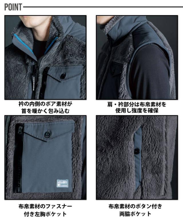 アイズフロンティア IZ FRONTIER ハイブリットウインドブロックボアフリースベスト 8817 防寒ベスト 軽防寒