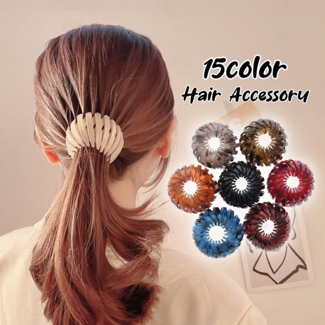 ヘアクリップ ポニーリング お団子 ポニーテール ヘアリング ヘアアクセサリー レディース 無地 鳥の巣 ヘアアレンジ 髪飾り