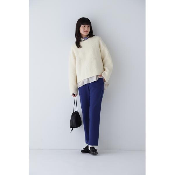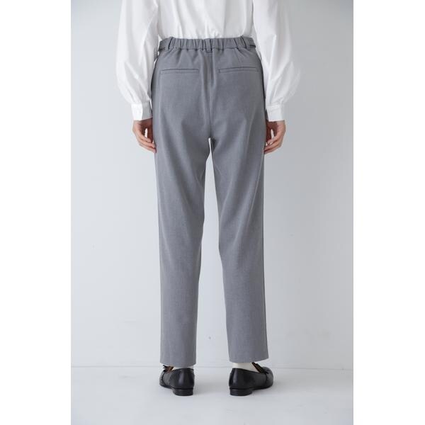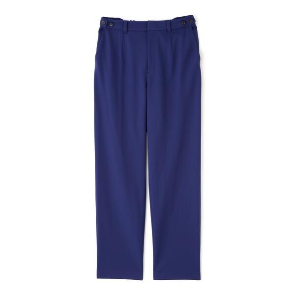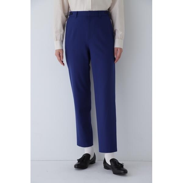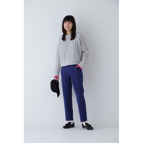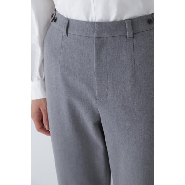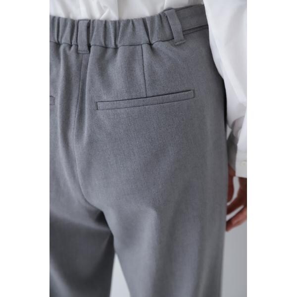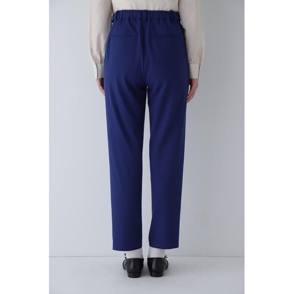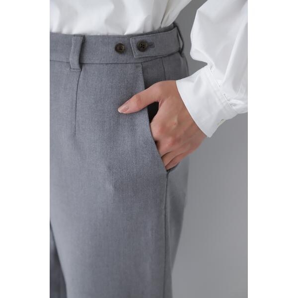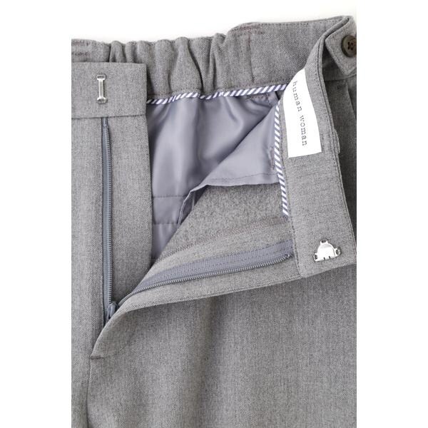 定番の細身ストレートパンツです。human womanらしいベルト脇のサイズアジャストタブがポイントです。ウエストの後ろベルトはシルエットに影響が出ない程度のゴム仕様になっており、履き心地の良いデザインになっています。