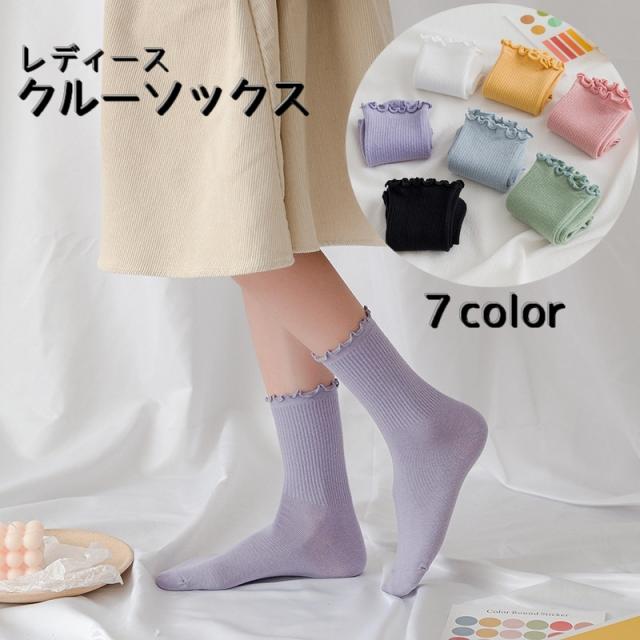 クルーソックス 靴下 レディース シンプル 無地 通学 デイリー 女の子 女性 婦人 フリル かわいい 秋 冬 カラバリ豊富