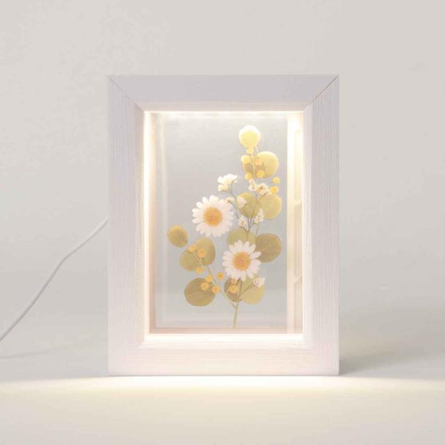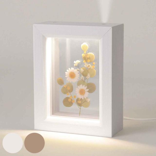 加湿するだけではなく、夜間は間接照明として、昼間はインテリアとして楽しめる加湿器です。ドライフラワーのクリアカードをそのまま飾ったり、付属のアクリルパネルにお手持ちのホワイトマーカーで好きな絵を描いて飾ることができます。ナチュラルなデザインなのでお部屋に馴染みます。