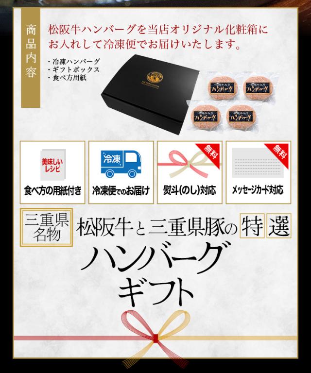 三重県 名物 松阪牛 三重豚 特選 ハンバーグ ギフト 4個入 化粧箱入 三重県豚 お年賀 ギフト