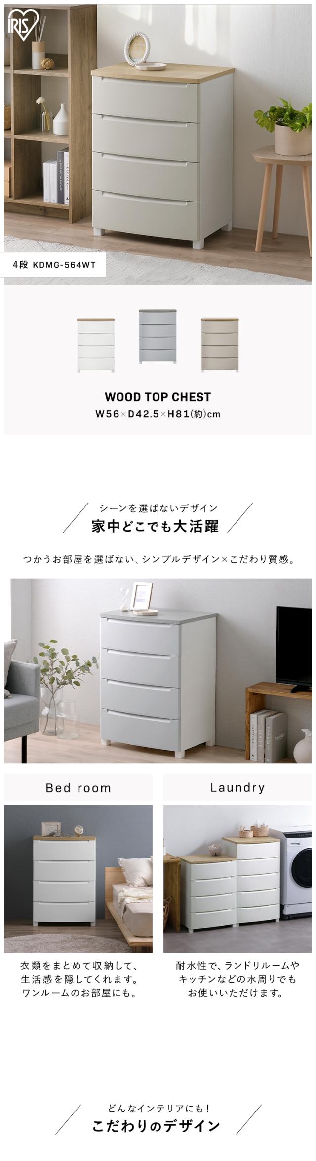 ★クーポンあり★ ウッドトップノックダウンチェスト KDMG-564WT ホワイト ライトグレー ベージュ 全3色 4段 チェスト 木目調 天板 収納 収納ケース 衣装ケース 引き出し 衣類 洋服 押入れ クローゼット タンス アイリスオーヤマ 送料無料