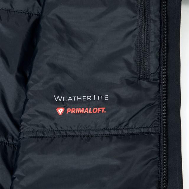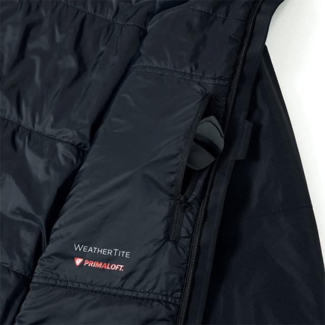 独自に開発された防水透湿素材WEATHERTITERを採用した防水中綿ジャケット。1990年代から2000年代初頭に展開していた製品をデザインや配色の参考に開発。中綿にはPRIMALOFTRBlackInsulationEcoを採用。適度な保温性をもち、雨や雪、冷気から身体を保護。グローブを着用したままでも操作のしやすいフード仕様。小物の収納に便利なジッパー付インナーポケット搭載。