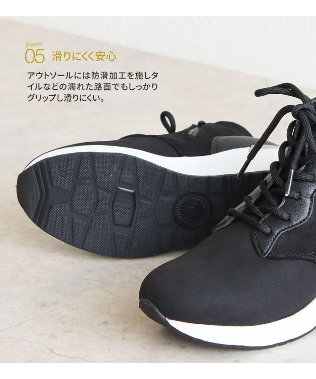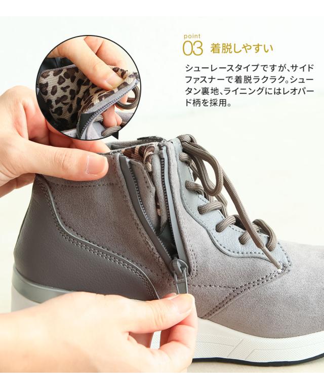 シューレースタイプですが、サイドファスナーで着脱ラクラク。