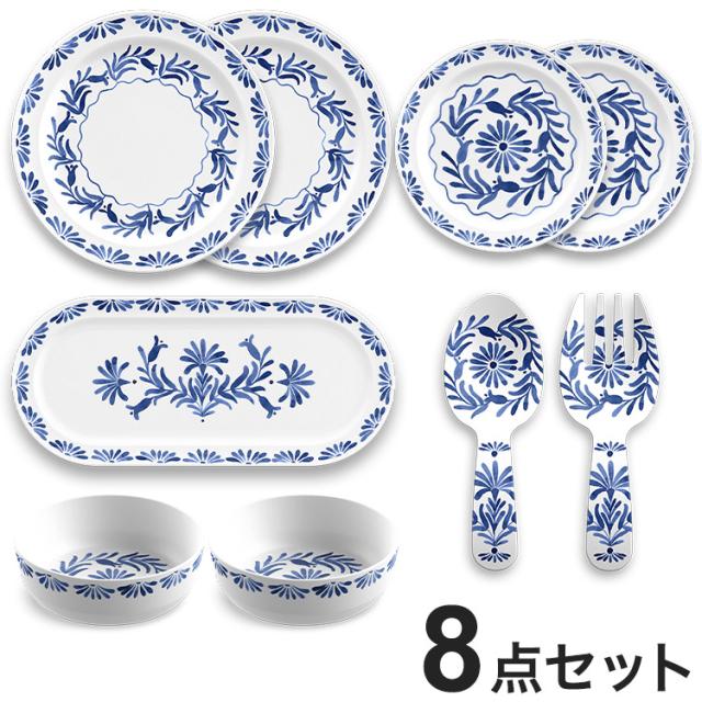 アズール 8点セット メラミン食器 割れにくい おしゃれ 食洗機対応 ボウル お皿 深皿 可愛い 電子レンジ不可 食洗機対応 食器セット プレート(代引不可)【送料無料】