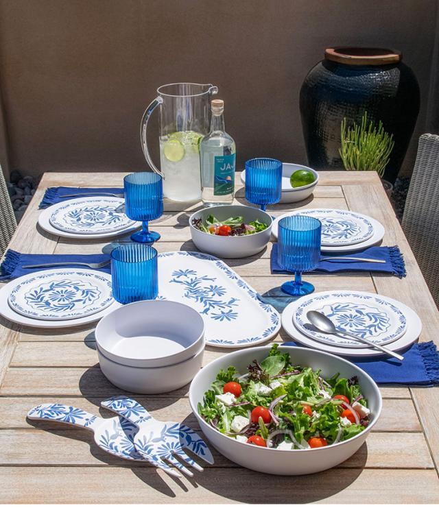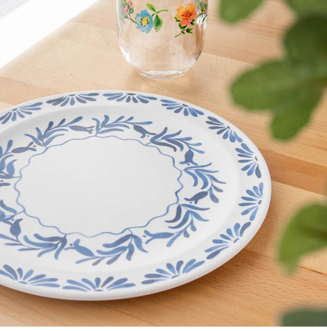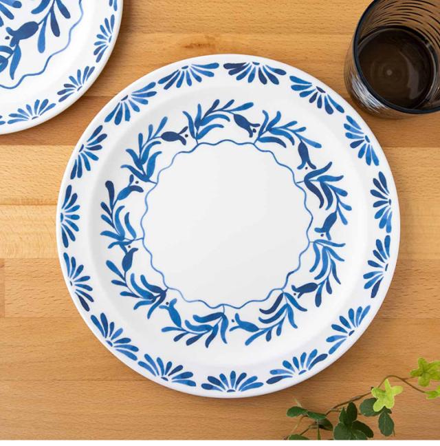 ホワイトベースにブルーのプラントデザインが特徴のメラミン食器です。青磁をイメージしたヨーロッパスタンダードデザインです