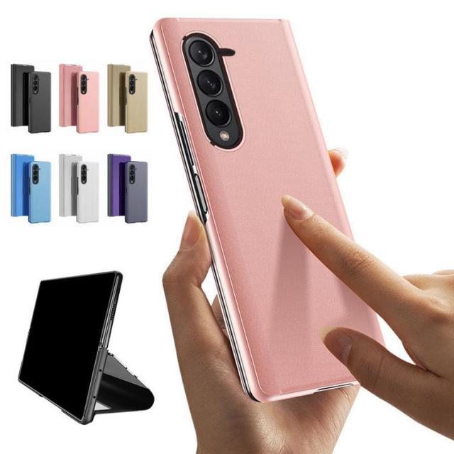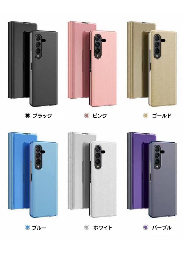 Galaxy Z Fold 5 ケース 手帳型 かわいい 見開き型 2つ折り 液晶保護 パネル半透明 メッキ 鏡面 スタンド機能 サムスン ギャラクシー Z フォールド 5 スマホケース おしゃれ スマホカバー スマートフォン ケース カバー