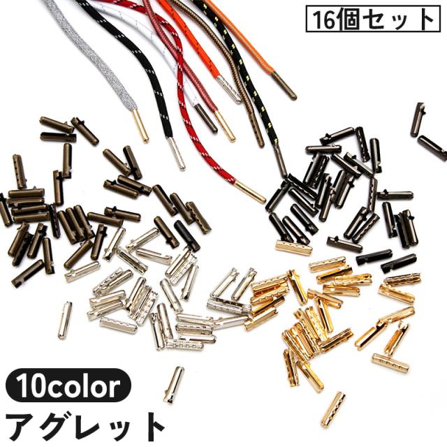 アグレット 16個セット シューパーツ 紐止め 先端 金具 留め具 靴 パーカー スニーカー 紐 装飾 おしゃれ カラバリ豊富