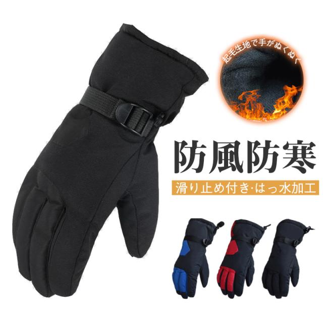 手袋 メンズ スポーツ 冬 スキー手袋 防風 防寒 撥水 ベルト 調節 カップル 雨雪 厚手 グローブ 五本指 裏起毛 保温 暖か
