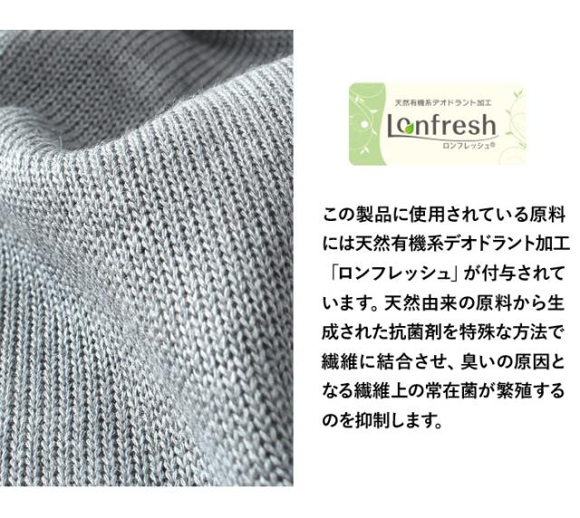 すっきりしたサイジングが上品な印象の国産ハイゲージニット。抗菌防臭加工ロンフレッシュを施し、清潔な機能性をプラス。ベーシックなデザインで、ジャケットやアウターのインナーとして着用できます。