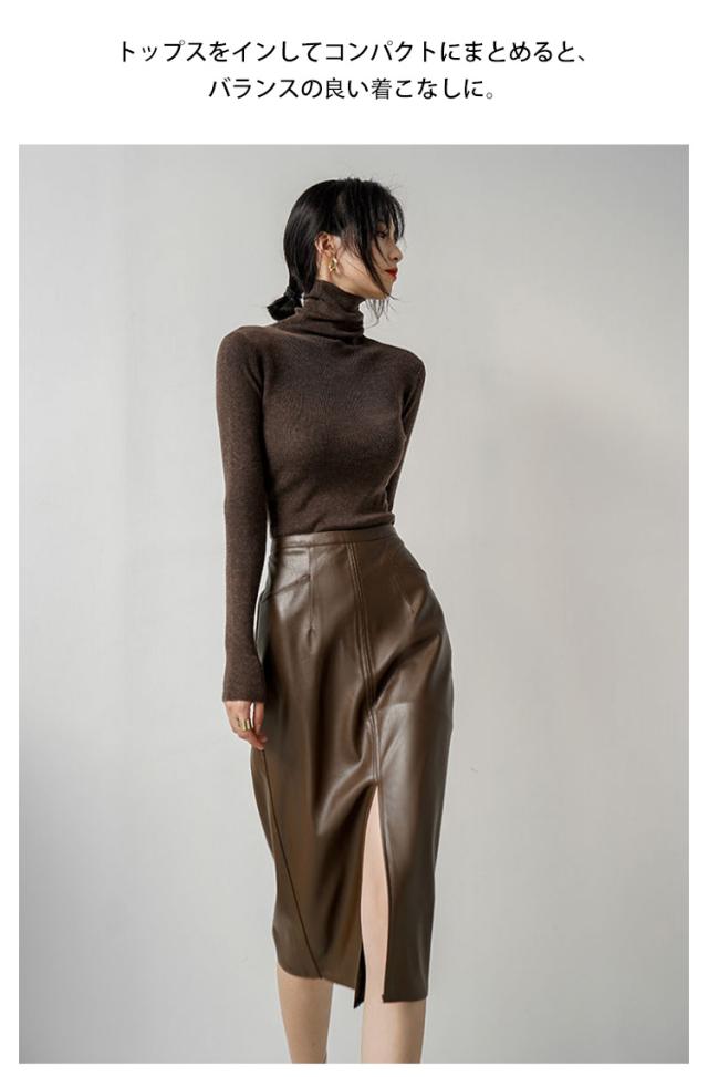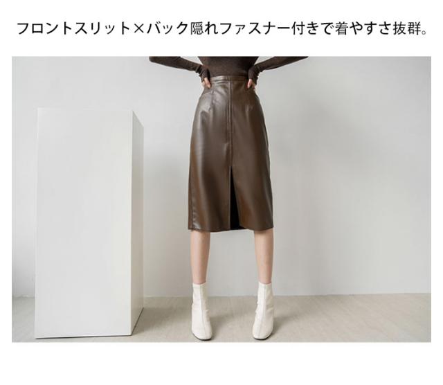 タイトスカート ロング PU ロング レザースカート フロントスリット 秋冬 タイト 合皮 スカート 膝下丈 Aライン ハイウエスト 合皮スカート 通勤 エレガント 20代 30代 送料無料