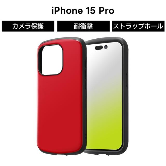 iPhone 15 Pro ケース レッド 耐衝撃 iPhone15Pro アイフォン15プロ 丈夫 シンプル 無地 ハイブリッドケース ソフト ハード スマホケース