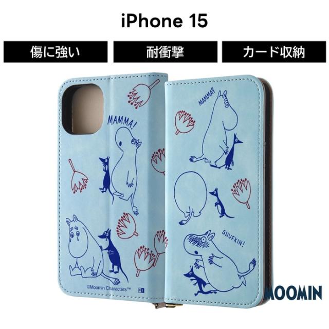iPhone 15 ケース ムーミン ブルー 手帳型 iPhone15 アイフォン15 レザー ソフト ソフトケース ハード ハードケース スマホケース キャラクター かわいい 可愛い カード収納