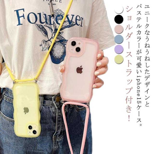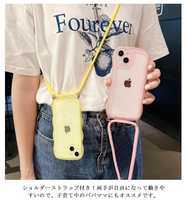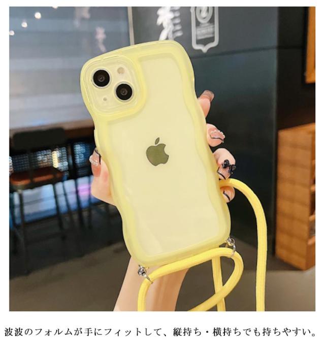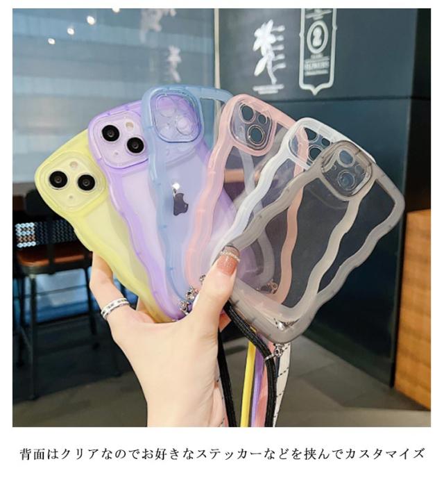 XR ケース XS iphone14 ショルダーストラップ iphone15proケース iphone15pro iphone15plus なみなみ スマホショルダー クリア ケース iphone13 11 12 13pro 12promax うねうね ストラップ ケース 肩掛け かわいい 紐 ウェーブ 透明 iphoneケース 韓国 iphone15