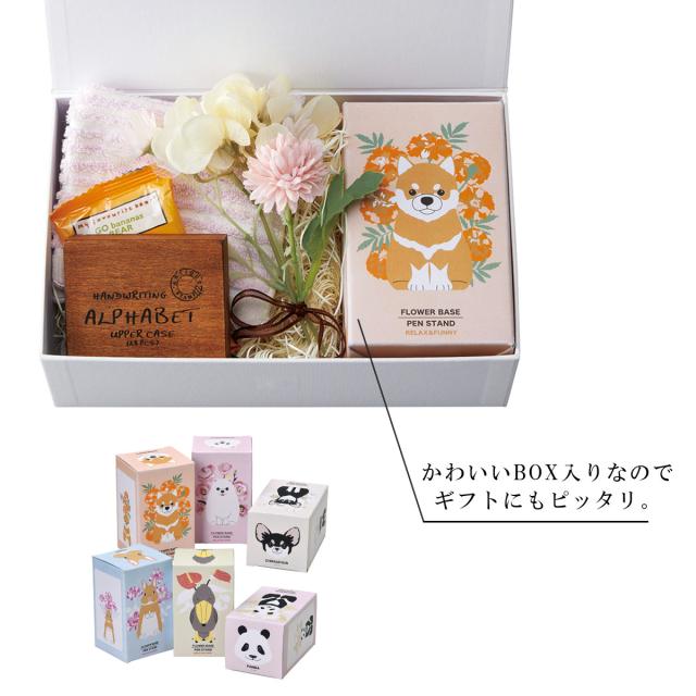 かわいい動物とインテリアを楽しめる。アニマルパン立てが登場! かわいい動物たちがモチーフになった、フラワー&ペンスタンドが登場! お花を飾ったり、ペン立てにしたり全11種類のキュートな動物たちとインテリアを楽しめます。 かわいいBOX入りなので、ギフトにもピッタリです。 |