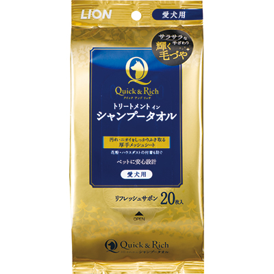 ライオンペット Quick & Rich トリートメントインシャンプータオル 愛犬用 リフレッシュサボン 20枚 ペット ※取寄商品
