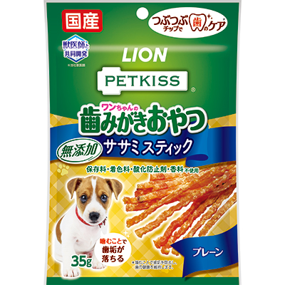 ライオンペット PETKISS ワンちゃんの歯みがきおやつ 無添加ササミスティック プレーン 35g ペット ※取寄商品 賞味期限:3ヵ月以上