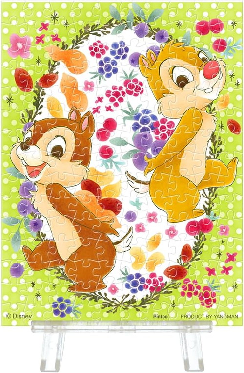 水彩調で描かれた愛らしいチップ&デールのアートと透明素材を生かした透け感のあるデザインが魅力的なパズルです。