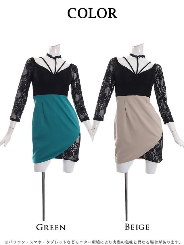 ☆ランジェリー風袖付きデザインはシアーで素肌をちら見せするエロさたっぷりで二の腕カバーも抜群のキャバドレスドレス。
