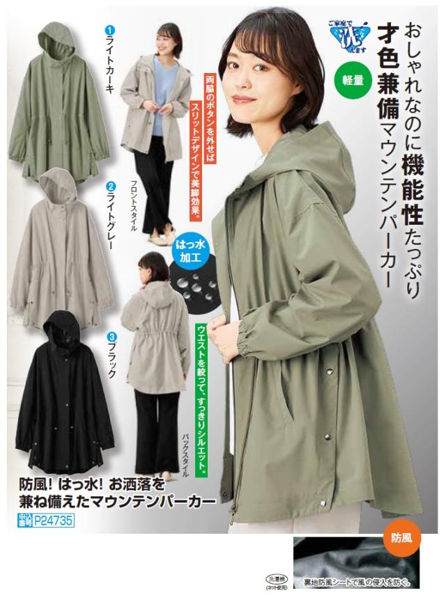 マウンテンジャケット レディース シニア 防風! はっ水 お洒落を兼ね備えたマウンテンパーカー 全3色 婦人服 ミセス 女性 カーキ グレー ブラック グリーン 緑 黒 無地 シンプル おしゃれ ファッション 50代 60代 70代 80代 母の日 お母さん 秋冬 fri p24735 p26398
