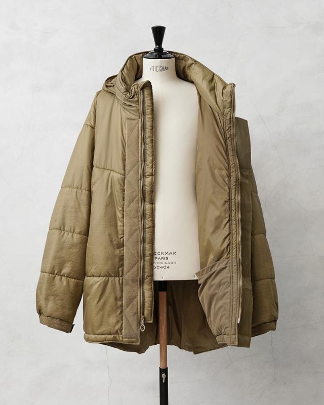 BEYONDからA7 COLD PARKAと呼ばれる極寒の環境でも暖かく過ごせるように設計された通称モンスターパーカーと呼ばれる大きな作りのインサレーションジャケットが入荷しました。 バックパックを背負った上から着用できる大型のデザインは、ザックの奥行きを考慮し、後ろ身頃が長めにデザインされています。現在、アメリカの特殊部隊では公式の防寒服としてBEYOND製を取り扱っており、兵士からも絶大な支持を得ています。「CLIMASHIELD APEX / クライマシールド エーペックス」は、現在市場にある中綿素材の中で最も軽量で熱効率が高いとされています。保温性、耐久性、軽量性、形状保持の機能を実現しています。その高機能の中綿を使用した製品は米軍の「米軍 ECWCS Gen III Level 7 ジャケット 」にも採用されています。