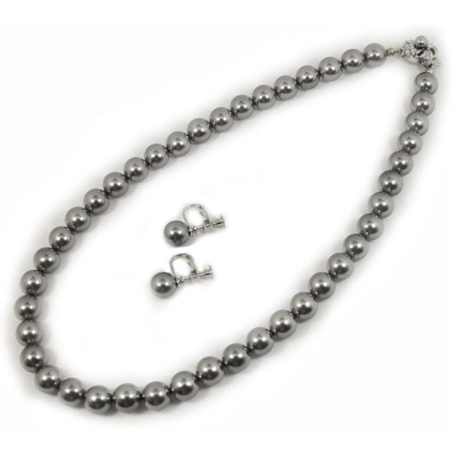 日本製>国内産 高級本貝パール9mmフォーマルセット グレーブラック (ネックレス、イヤリングセット)【ギフトラッピング済み】【6月誕生石真珠】