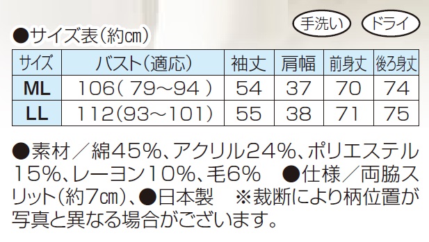●素材/綿45%、アクリル24%、ポリエステル15%、レーヨン10%、毛6%
