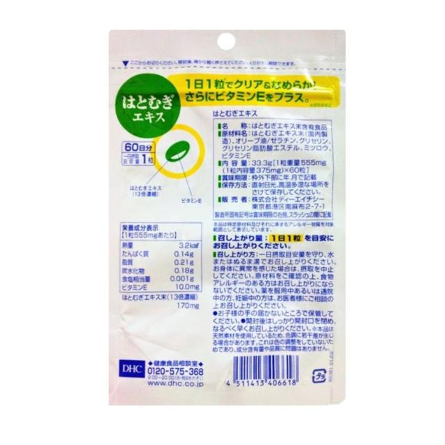 DHC はとむぎエキス 60日分 ソフトカプセルタイプ 栄養機能食品 13倍濃縮エキス 透明感となめらかさを 送料無料