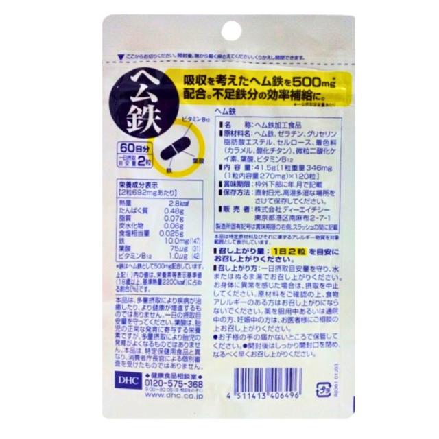 DHC ヘム鉄 60日分 栄養機能食品鉄・ビタミンB12・葉酸 カプセルタイプ 女性にうれしいミネラルパワー 送料無料