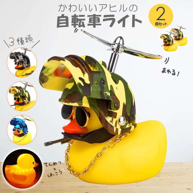自転車ライト アヒルライト 2個セット 黄色アヒル 可愛い 自転車ベル プロペラ搭載 音が出る ライト点滅 夜間走行に バイク 車にも ヘルメットにプロペラ付き 車内インテリア 取付簡単 夜間 アヒル隊長