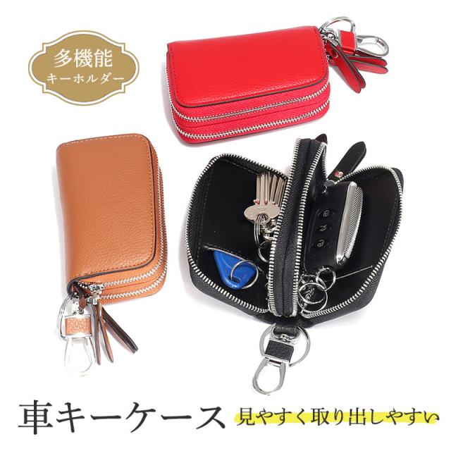 キーケース 2個収納 メンズ レディース 車キーケース キーホルダー キーポーチ 鍵ケース 鍵 革 大容量 多機能 コンパクト 敬