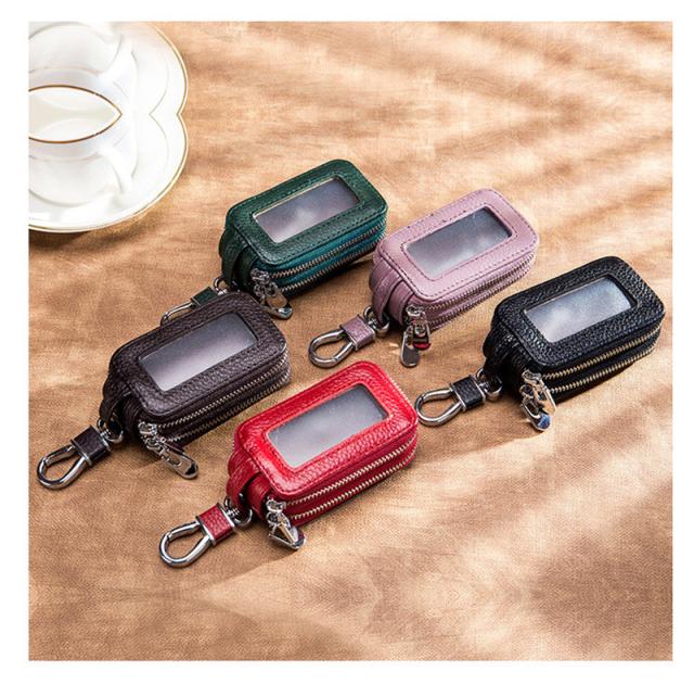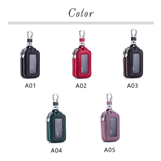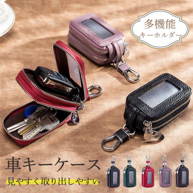 キーケース 2個収納 クリア窓付き メンズ レディース 車キーケース キーポーチ 鍵ケース キーホルダー 革 大容量 多機能 コ