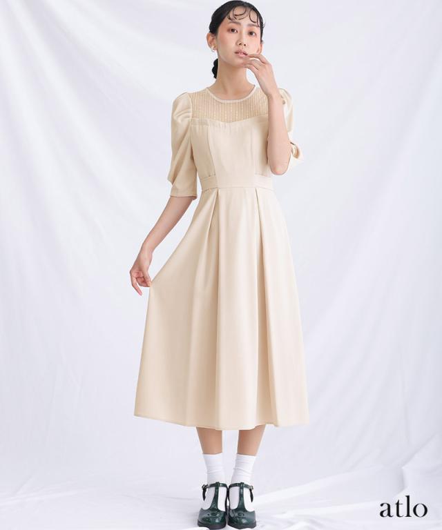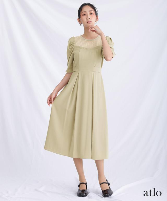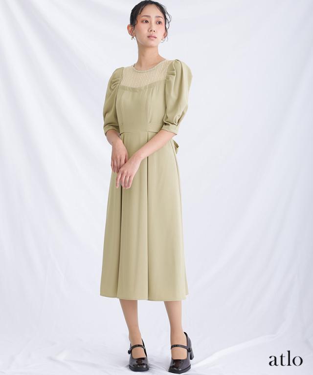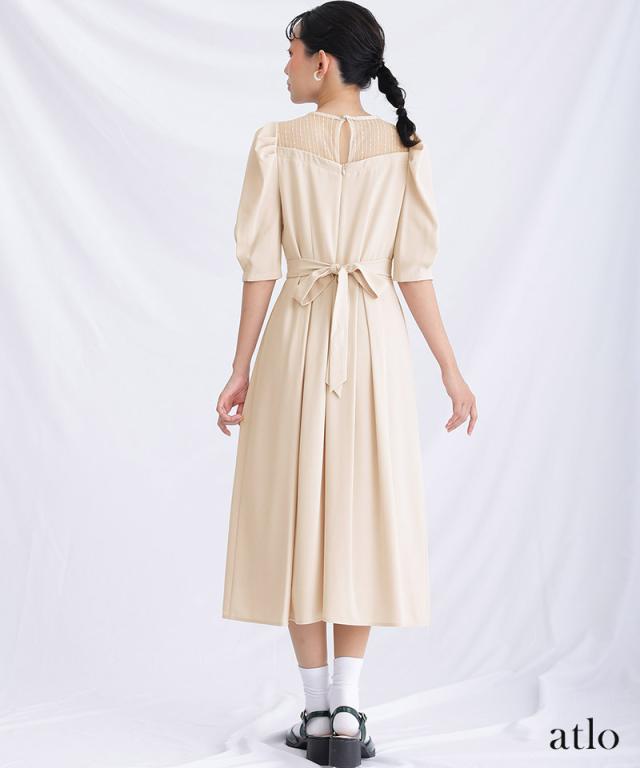 パフスリーブが全体のアクセントになったパーティドレス。
