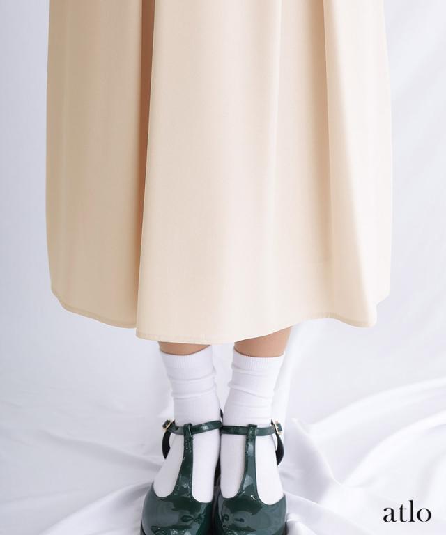 ウエストはリボンで結んで後ろ姿は大人可愛い印象に。