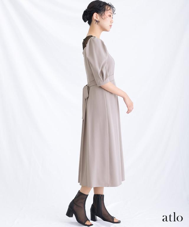 リボンベルトパフスリーブドレス【793231822】20代・30代・40代・54代長袖・膝丈・セットアップ・スカート・体型カバー・ジャケット・テーラード・スーツ・大きいサイズなど・即日発送・送料無料結婚式・婚活・披露宴・顔合わせ・二次会・同窓会・お呼ばれ・食事会・謝恩会・親族・七五三・お宮参り・冠婚葬祭・弔事・女子会・デート・入学式・卒業式・入園式・卒園式・ママ・マタニティー・セレモニー・セレブ・パーティー
