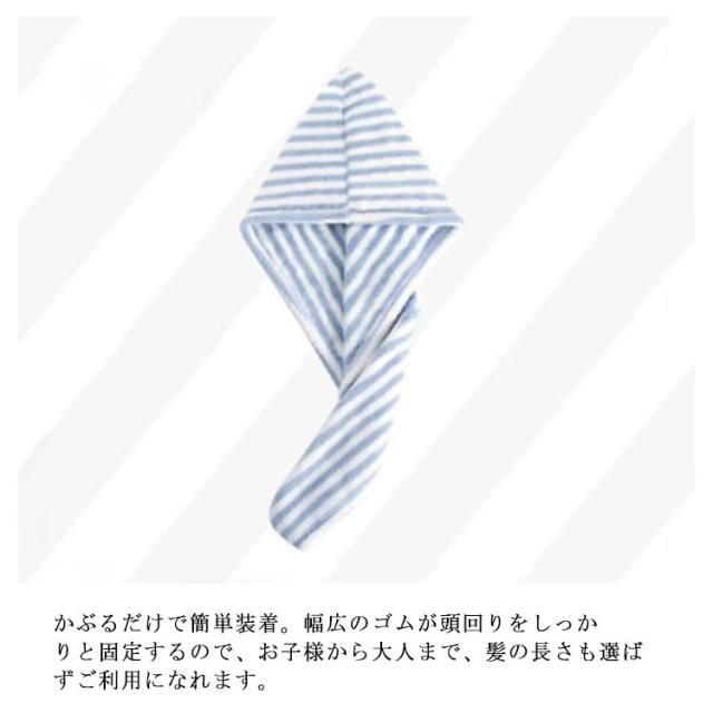 | お風呂上がりに頭にかぶるだけでしっかり吸水したタオルキャップ 吸水性抜群のマイクロファイバー素材で、こすらずに水分を吸いとります。 ドライヤーの使用時間も短縮できるので、髪をダメージから守ります。 かぶるだけで簡単装着。幅広のゴムが頭回りをしっかりと固定するので、お子様から大人まで、髪の長さも選ばずご利用になれます。 かわいいデザインでタオルドライが楽しくなる! | |