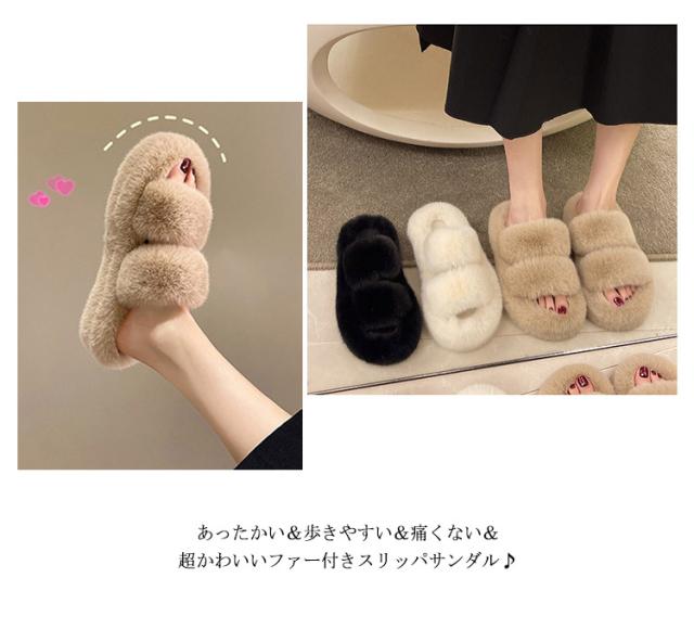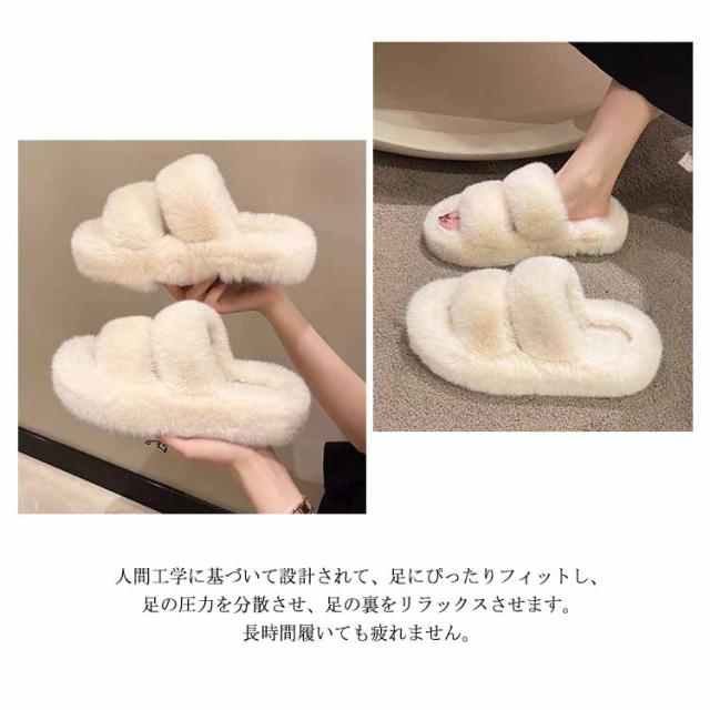 厚底 サンダル レディース ファーサンダル もこもこ スリッパ ファースリッパ 4cm 厚底 ルームシューズ 秋冬 ボア 来客用 クリスマス プレゼント ボアスリッパ 防寒 ふわふわ 送料無料
