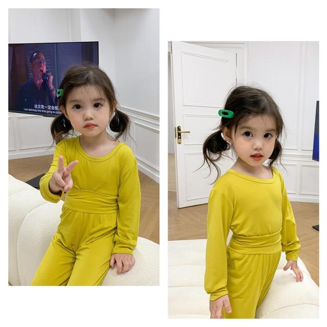 | 子供用の上下セットのパジャマです。 スモーキーカラーでお部屋の中でもおしゃれを楽しめるルームウェアです。 寝冷えを防ぐ腹巻き付きパジャマ! おやすみなさいが苦手なお子様も 眠るのが楽しくなっちゃいます♪ | |