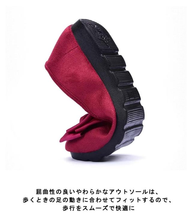| 屈曲性の良いやわらかなアウトソールは、歩くときの足の動きに合わせてフィットするので、歩行をスムーズで快適に さらに、アウトソールがやわらかいので、靴が足にフィットしたままカカトがあげられて脱げにくい 土踏まずのラインに沿って圧着をしているので、土踏まずの部分は沈み込まず、足裏のラインに沿ってフィット | |