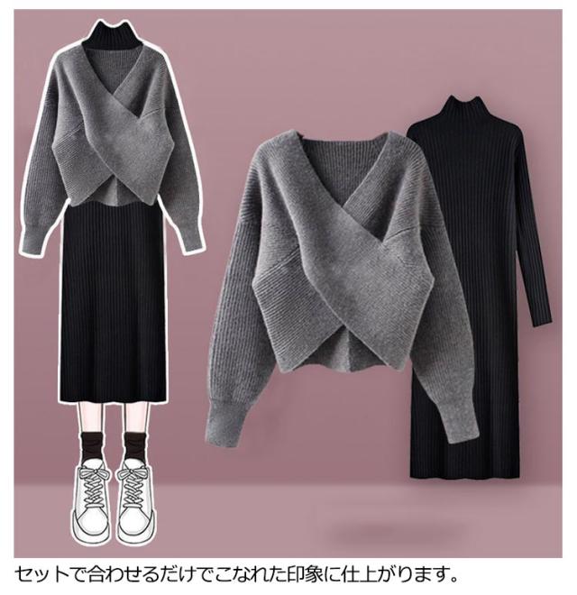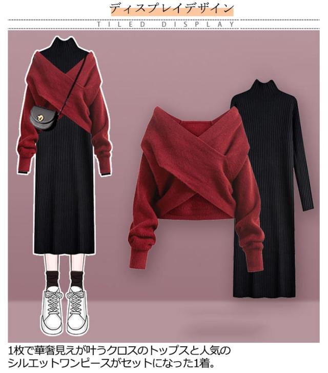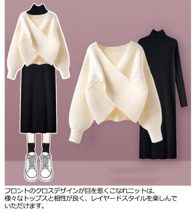 | 着回し力も抜群な嬉しい2点セットです! 1枚で華奢見えが叶うクロスのトップスと人気のシルエットワンピースがセットになった1着。 フロントのクロスデザインが目を惹くこなれニットは、様々なトップスと相性が良く、レイヤードスタイルを楽しんでいただけます。 ワンピースは細めリブでスッキリと1枚でも着やすいデザイン◎ セットで合わせるだけでこなれた印象に仕上がります。 | |
