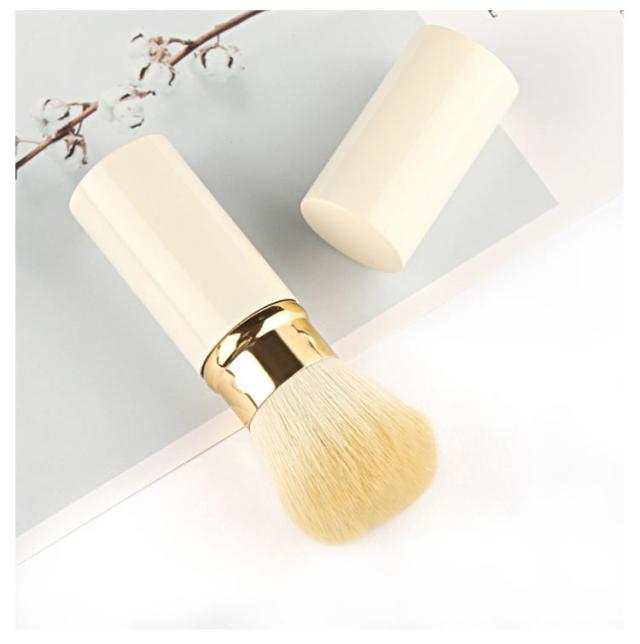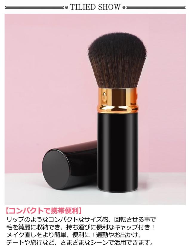 回転パウダーブラシ キャップ付き メイクブラシ 携帯用 スライド式 伸縮式 パウダーブラシ メイクブラシ ハイライトブラシ メイク直し コンパクト パウダーブラシ チークブラシ ミニ