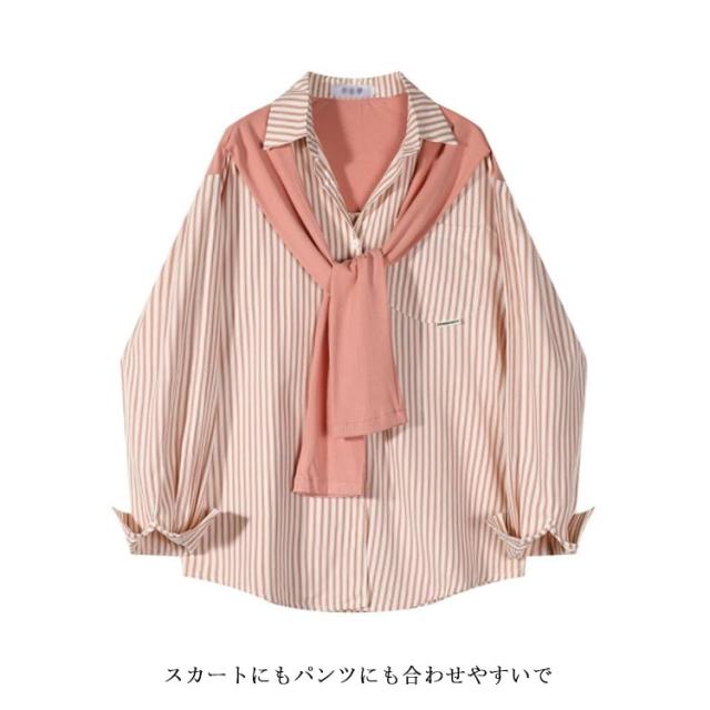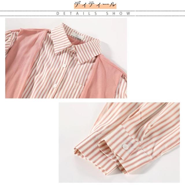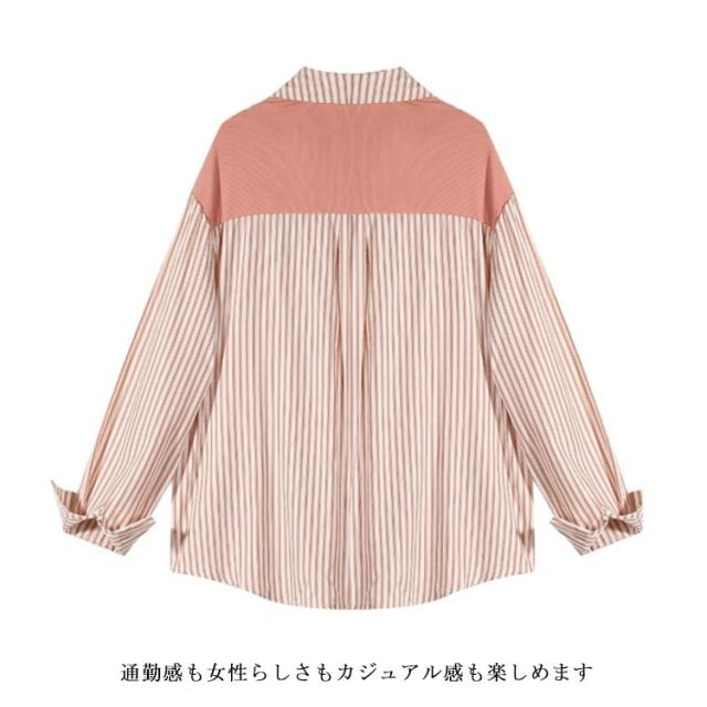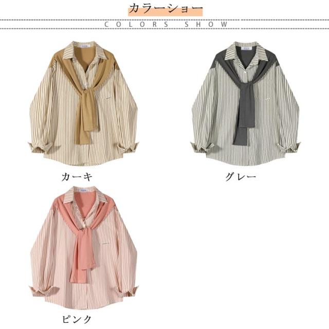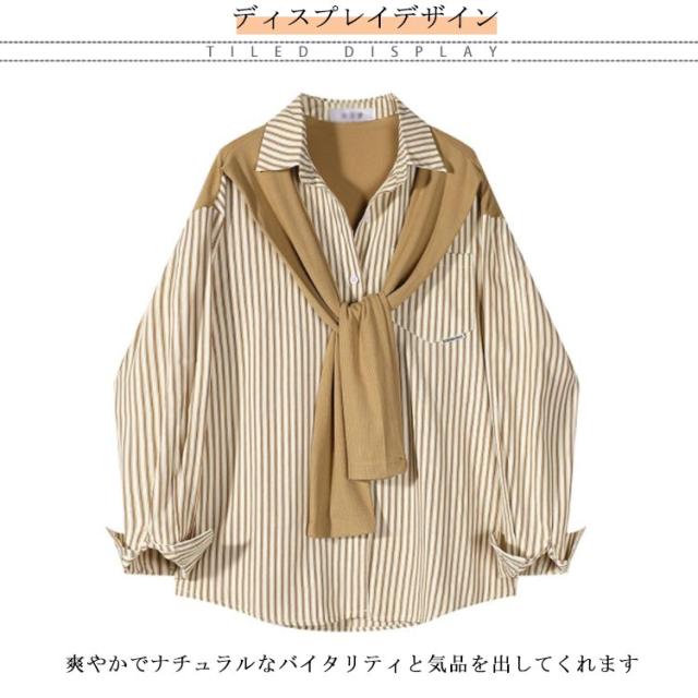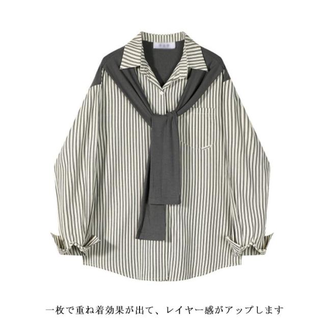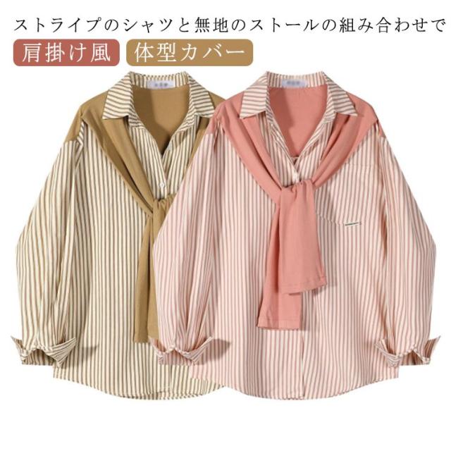 30代 秋 ストライプシャツ 長袖 襟付き 大きいサイズ ゆったり コーデ ブラウス 肩掛け風 体型カバー 重ね着 おしゃれ オフィス 通勤 着痩せ きれいめ カジュアル 20代 レディース