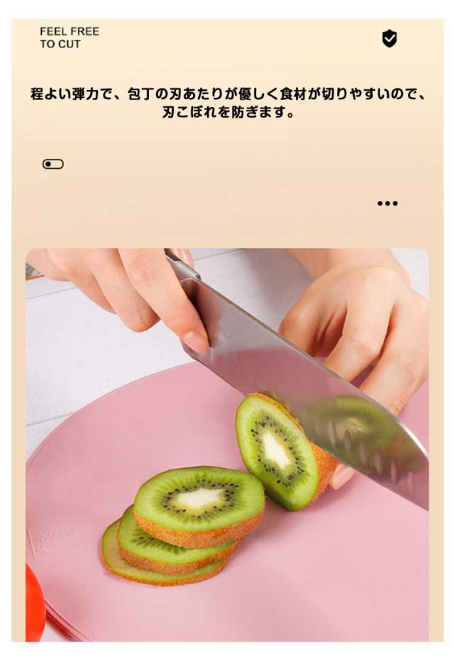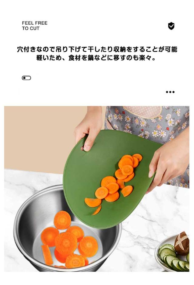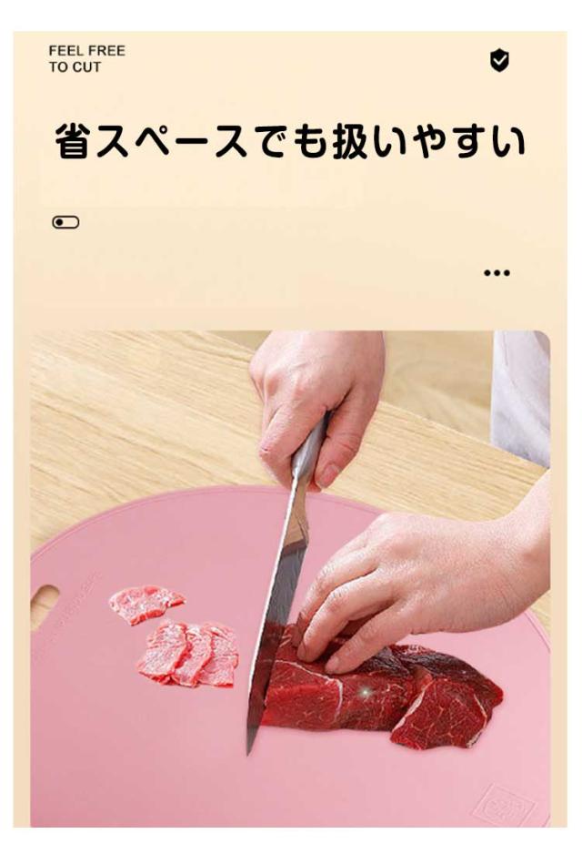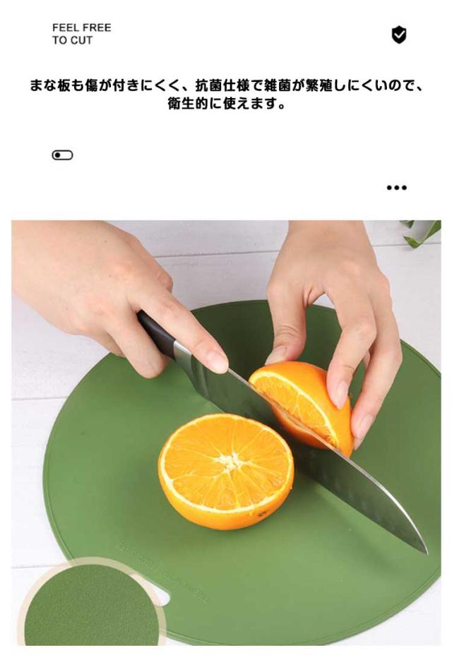 | まな板を回して複数の食材をカットできる、丸型のまな板。省スペースでも扱いやすい 程よい弾力で、包丁の刃あたりが優しく食材が切りやすいので、刃こぼれを防ぎます。 まな板も傷が付きにくく、抗菌仕様で雑菌が繁殖しにくいので、衛生的に使えます。 穴付きなので吊り下げて干したり収納をすることが可能 軽いため、食材を鍋などに移すのも楽々。 | |
